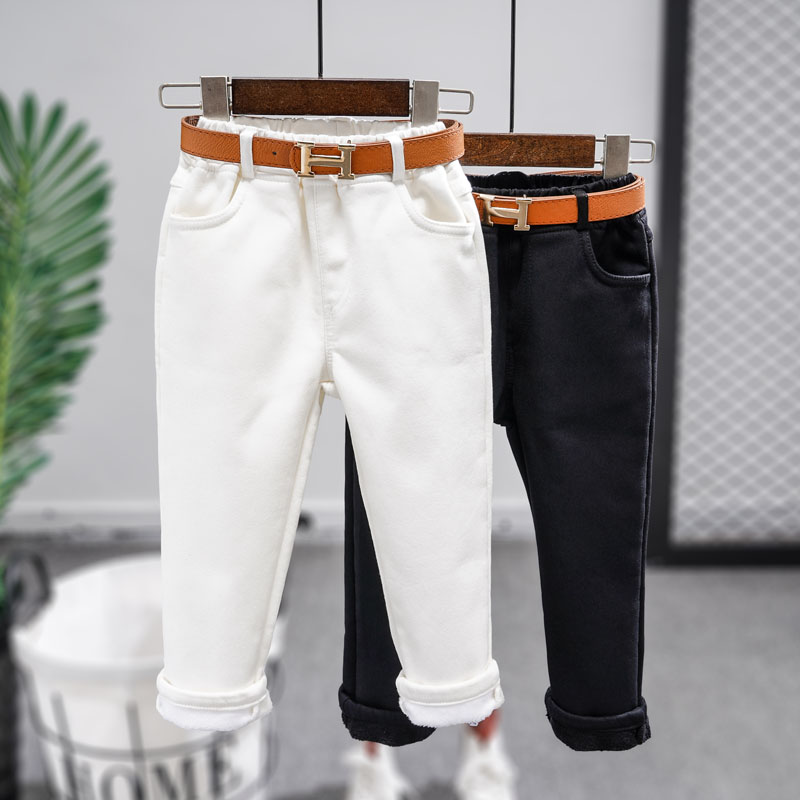 童装加绒长裤2025秋冬新款男女童黑白色修身小脚裤一体绒保暖裤潮