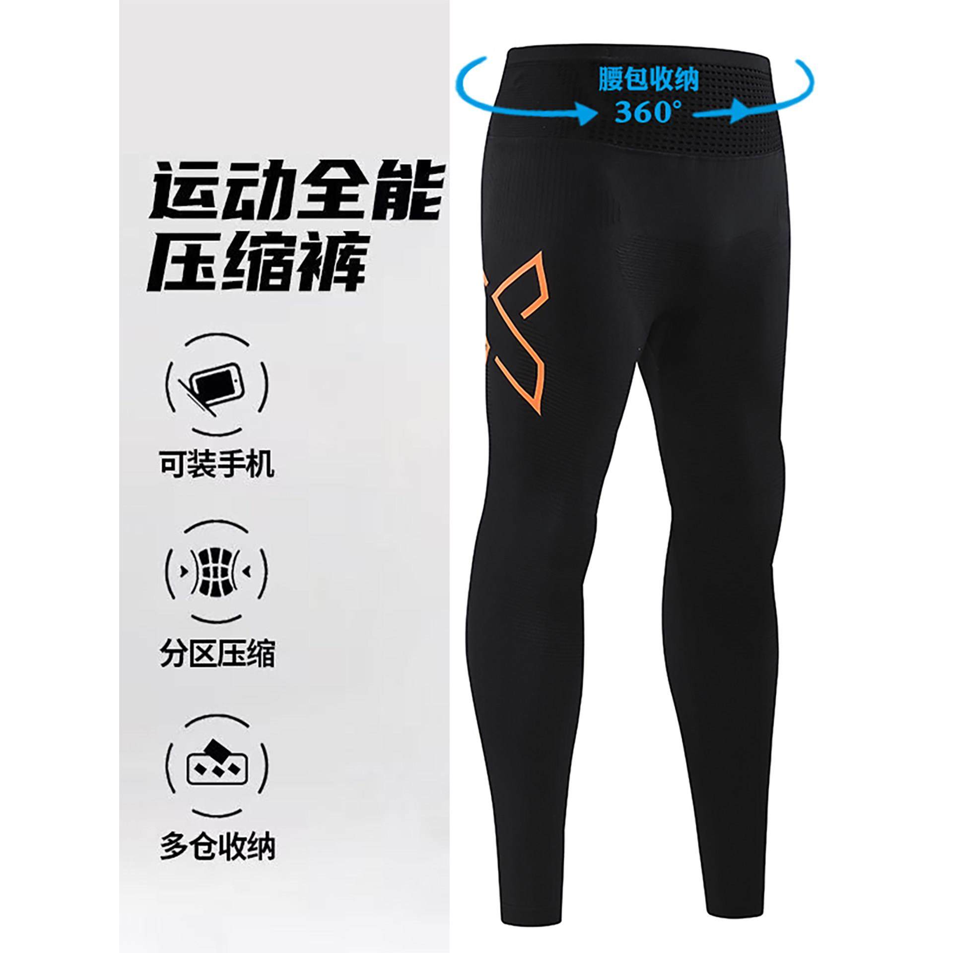 橙义家跑步压缩长裤男女款运动户外休闲健身训练紧身口袋可放手机