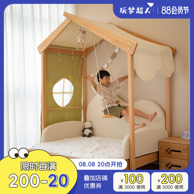 玩梦超人 儿童床冰棍儿床秋千抽拉环保实木帐篷伸缩房子床儿童房