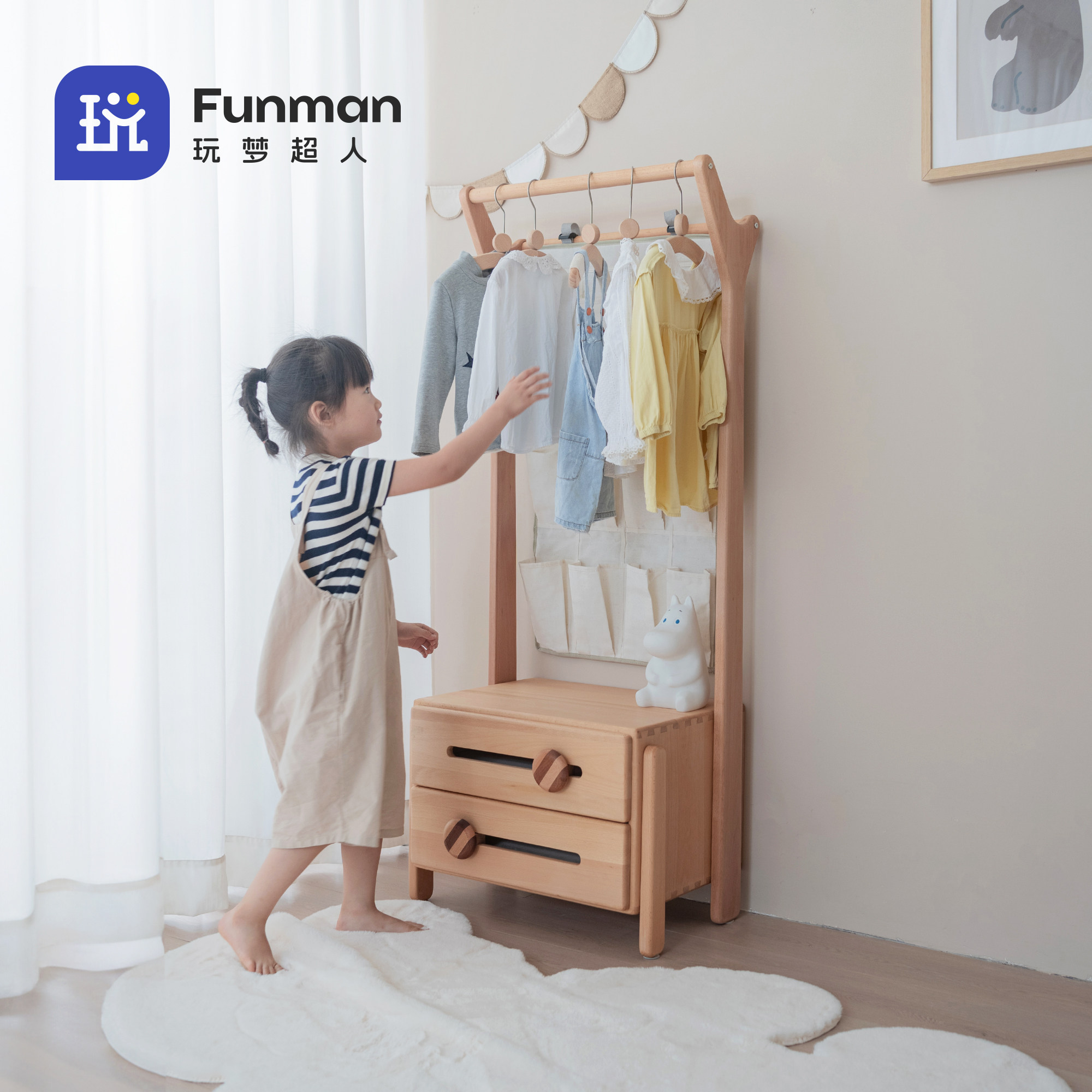 玩梦超人 儿童床头柜 挂衣架全实木榉木设计师款创意床头柜衣帽架