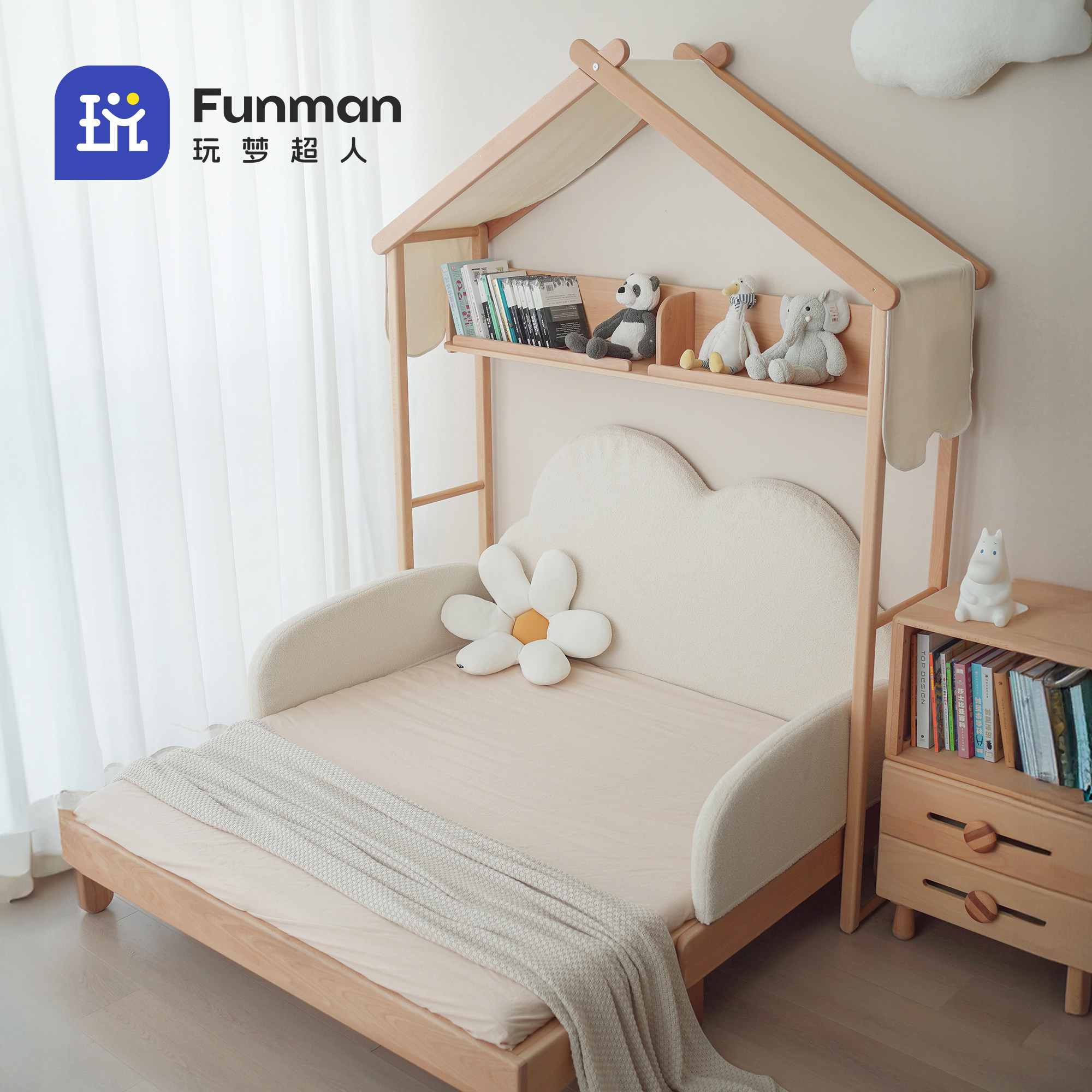 玩梦超人 儿童牀伸缩 云朵牀全实木榉木女孩卧室公主牀奶油儿童房