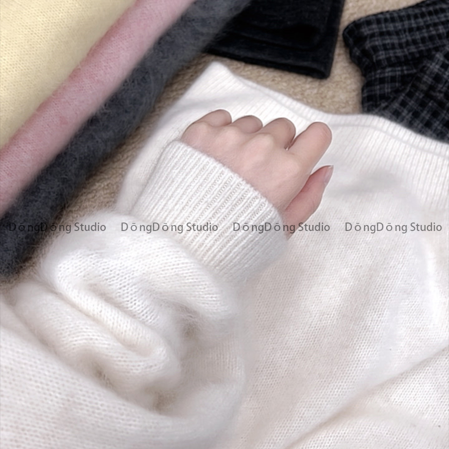 冬季毛衣女水貂绒保暖简约白色加绒毛线衣软糯打底衫加厚针织衫女