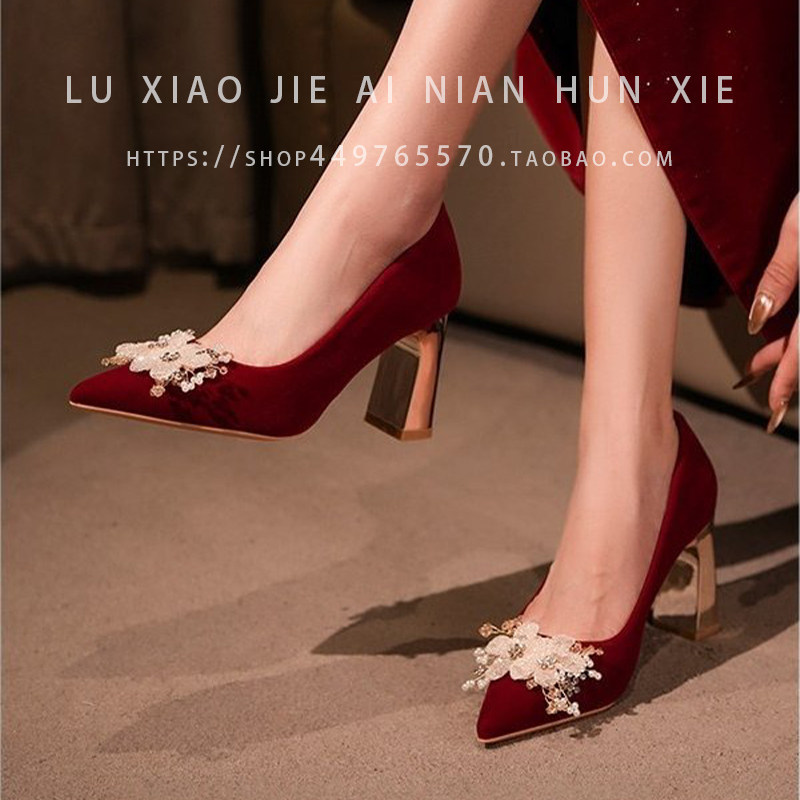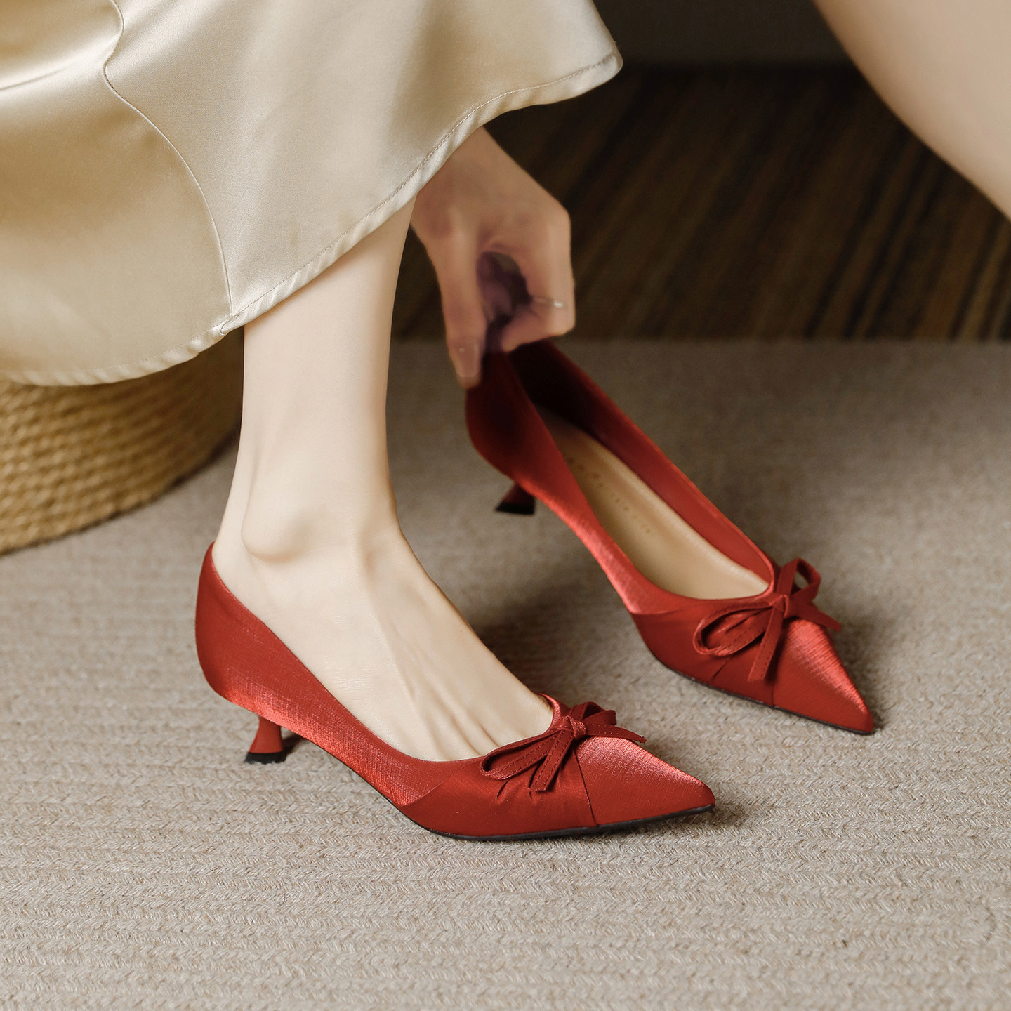 - 蝴蝶结高跟鞋细跟尖头 浅口