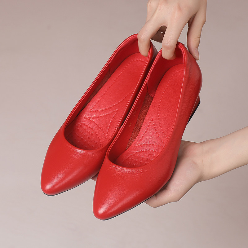- 女鞋春秋单鞋 真皮 平跟
