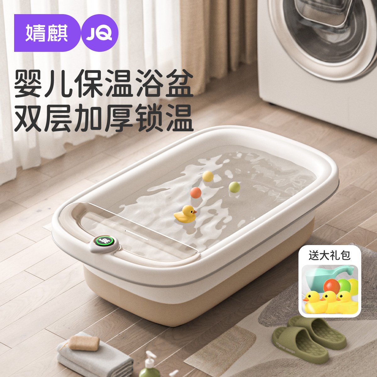 婧麒新生婴儿洗澡盆大号智能感温家用品一体式宝宝浴盆儿童泡澡桶