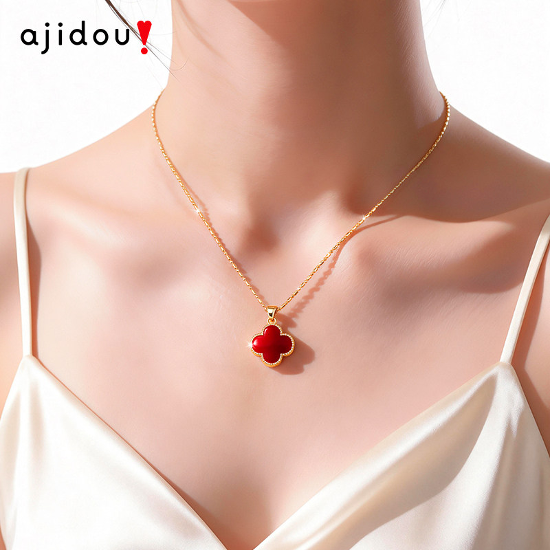AJIDOU阿吉豆项链女新年红四叶草锁骨链轻奢配饰小众高级感短颈链