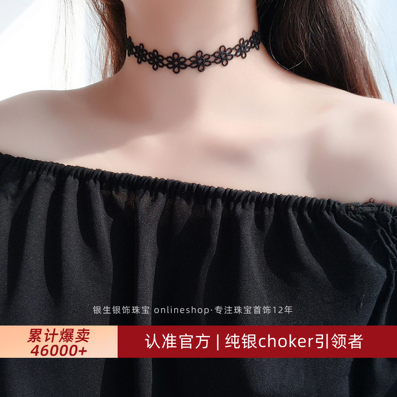 choker项圈项链黑色锁骨链女纯银简约日韩国脖子饰品短款颈链颈带