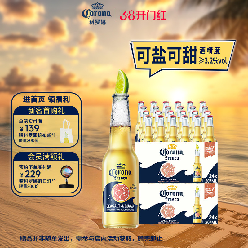 CORONA/科罗娜海盐番石榴啤酒207ml*48瓶拉格果啤11.5°P两箱批发