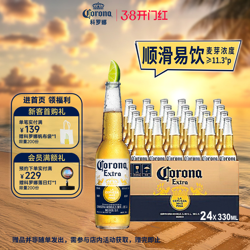 CORONA科罗娜11.3°P特级啤酒330ml*24瓶整箱墨西哥风味百威集团