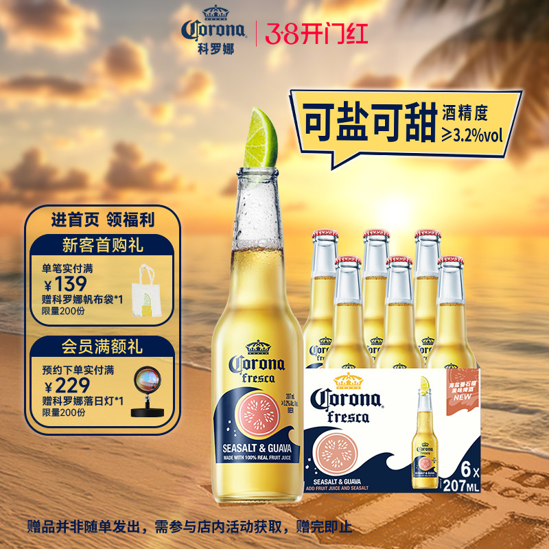 CORONA科罗娜海盐番石榴果味啤酒207ml*6瓶11.5°P拉格尝鲜