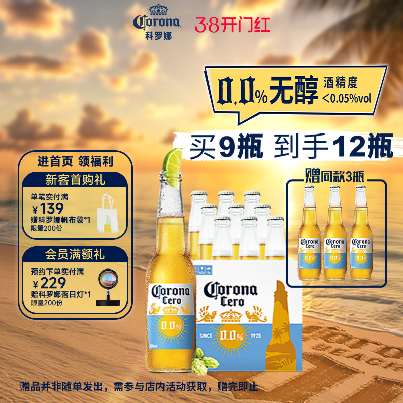 CORONA科罗娜4.2°P无醇啤酒300ml*12瓶低酒精0.0%整箱装百威集团