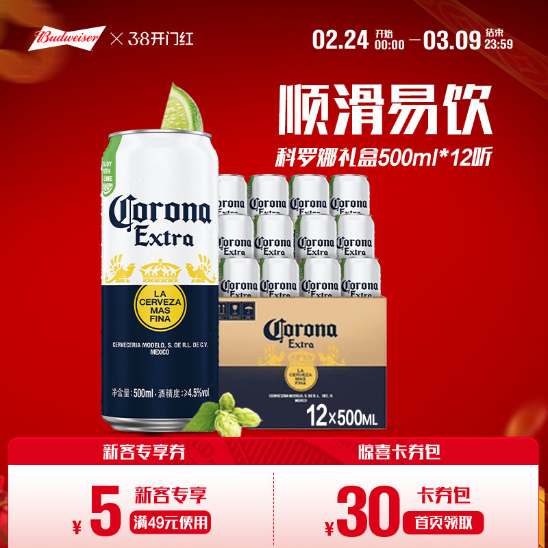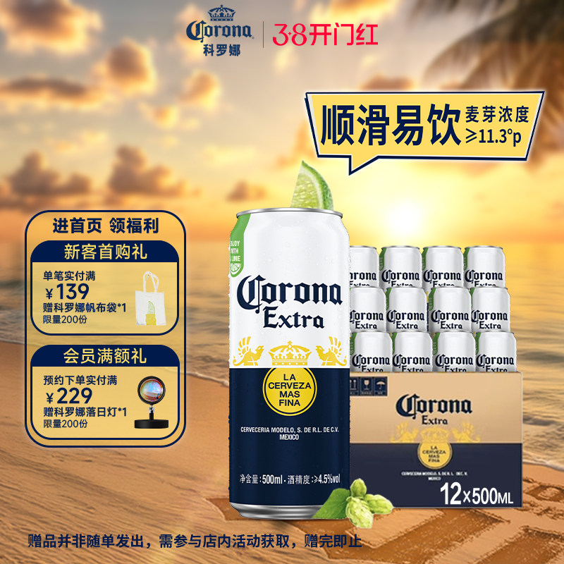 【直播间专享】科罗娜特级啤酒500ml*12听墨西哥风味礼盒装
