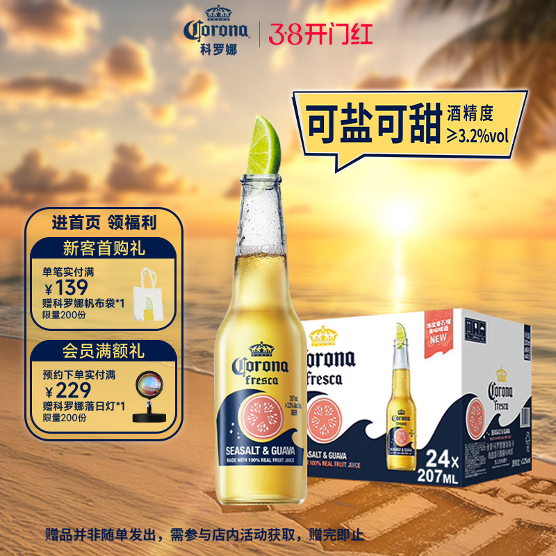 CORONA/科罗娜海盐番石榴啤酒207ml*24瓶拉格果啤11.5°P整箱批发