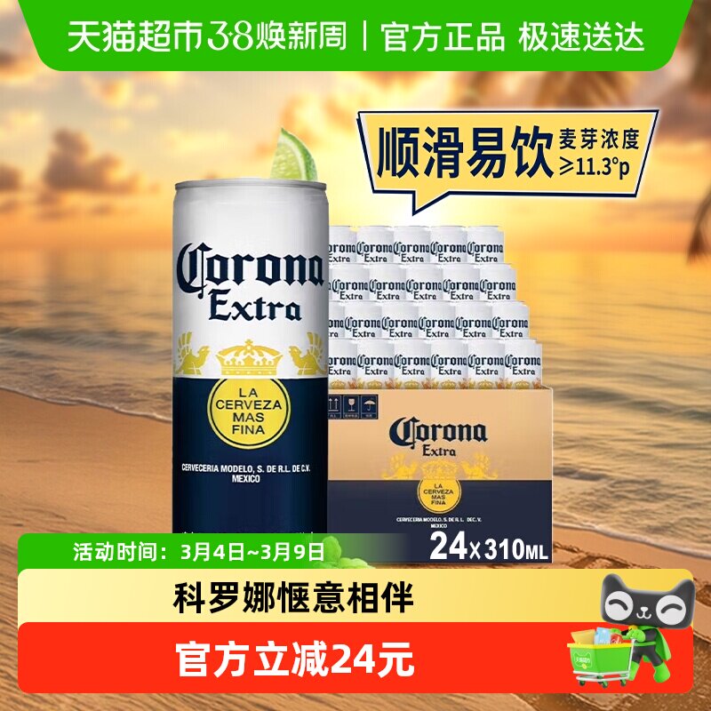 Corona/科罗娜特级啤酒310ml*12听11.3°P墨西哥风味拉格整箱批发