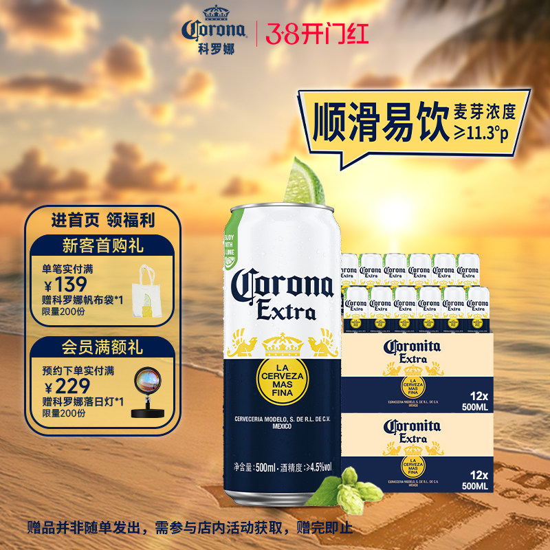 墨西哥风味CORONA/科罗娜特级啤酒500ml*24听整箱特价百威正品