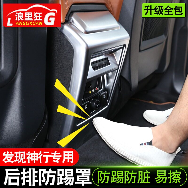 适用于路虎发现神行内饰改装 发现神行扶手箱后排防踢罩贴片亮条