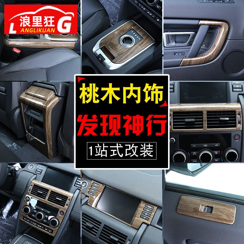 15-19款路虎发现神行内饰改装桃木色胡桃木纹装饰贴中控排挡配件