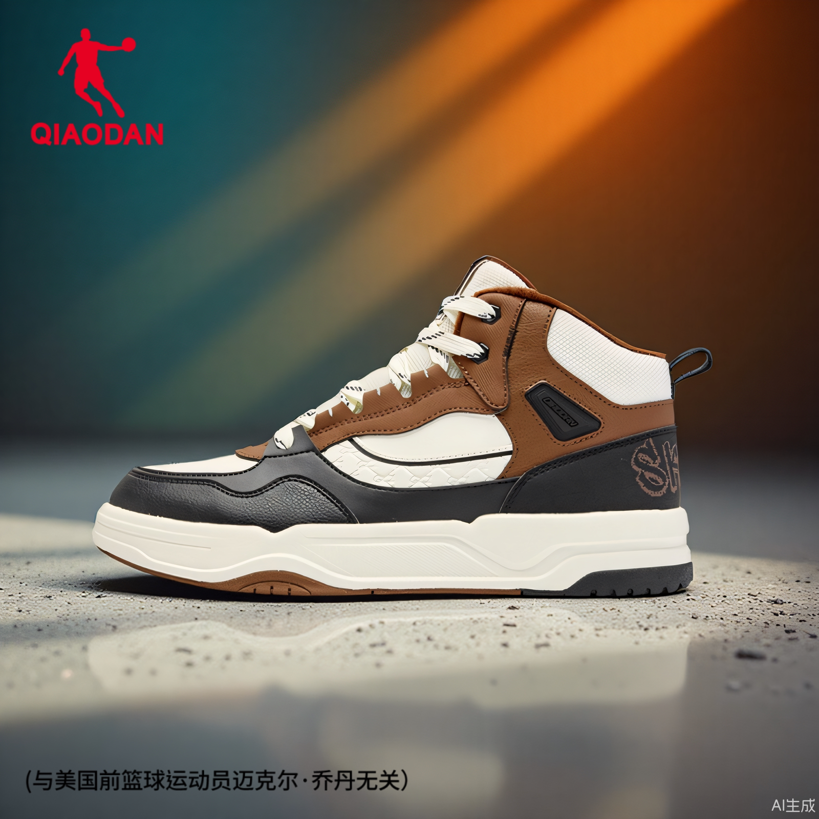 乔丹黑白革面高帮男板鞋2025冬季新款防滑运动鞋革面休闲鞋平底鞋