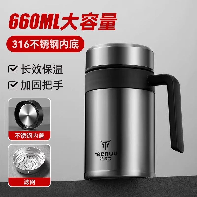 日本泰福高316不锈钢保温杯带手柄大容量水杯办公保温茶杯带滤网