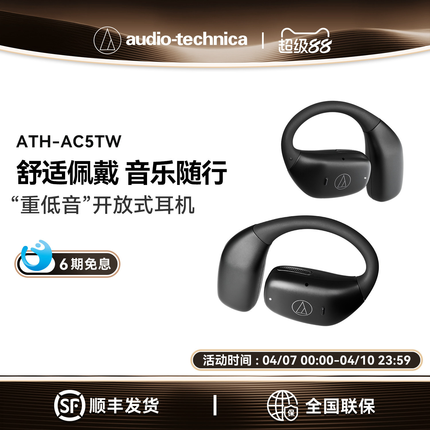 【新上市铁三角ATH-AC5TW无线蓝牙耳机挂耳开放式运动跑步不入耳