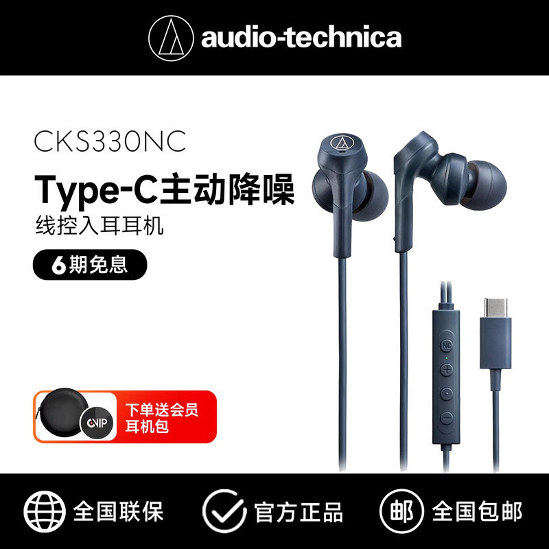 铁三角CKS330NC入耳式有线耳机主动降噪type-c接口HIFI音质重低音