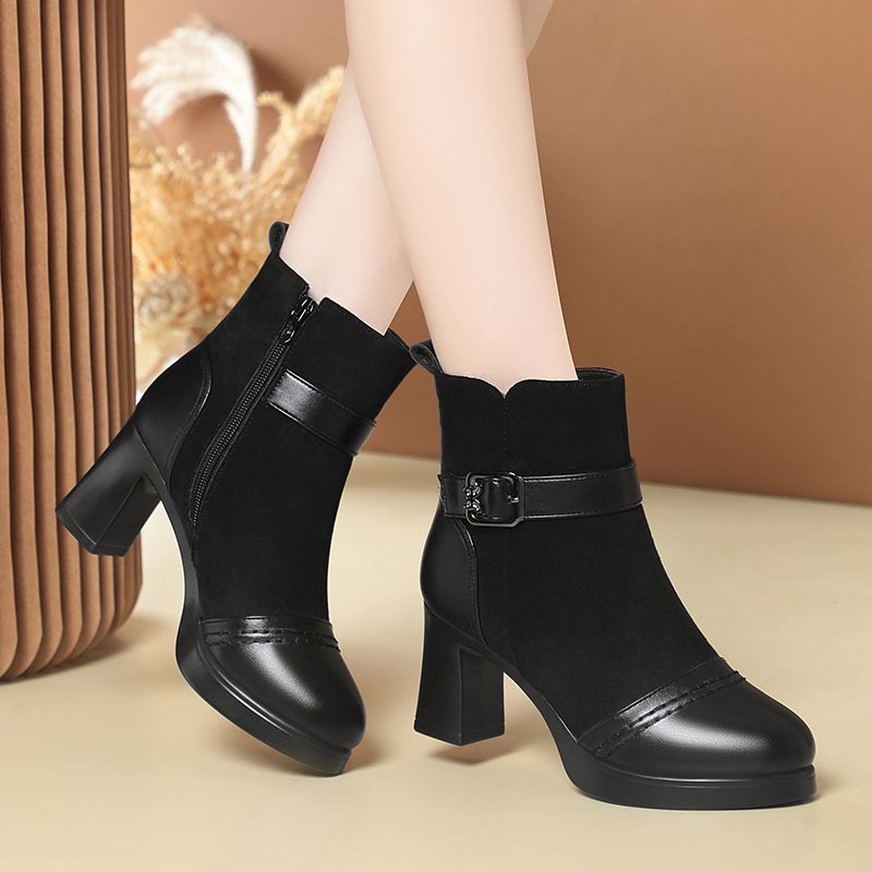 - 粗跟单靴短靴女春秋韩版