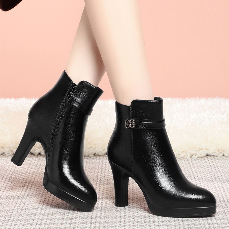 - 真皮高跟短靴