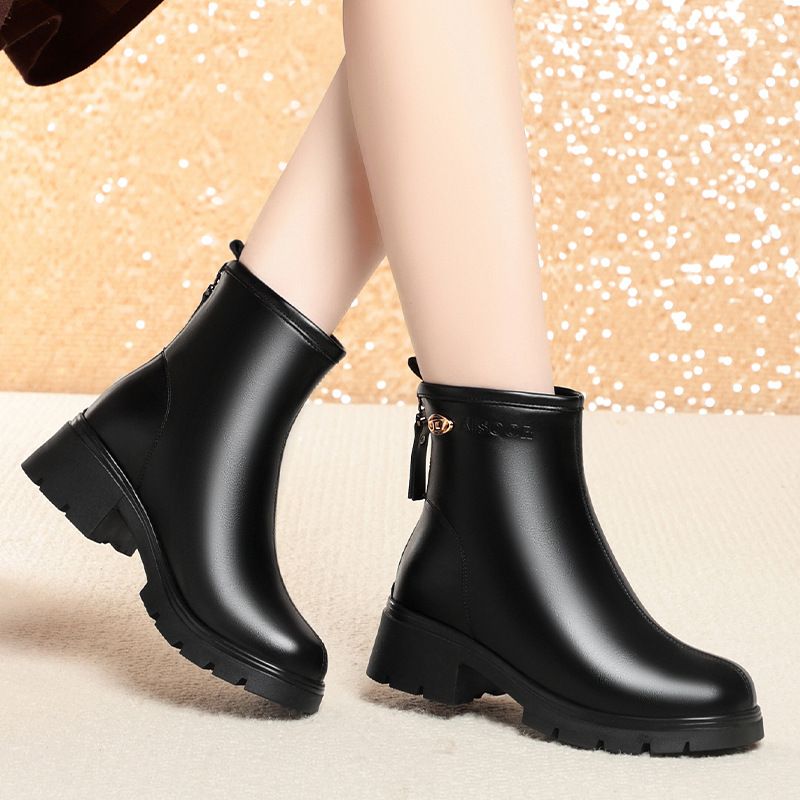- 真皮低跟女靴