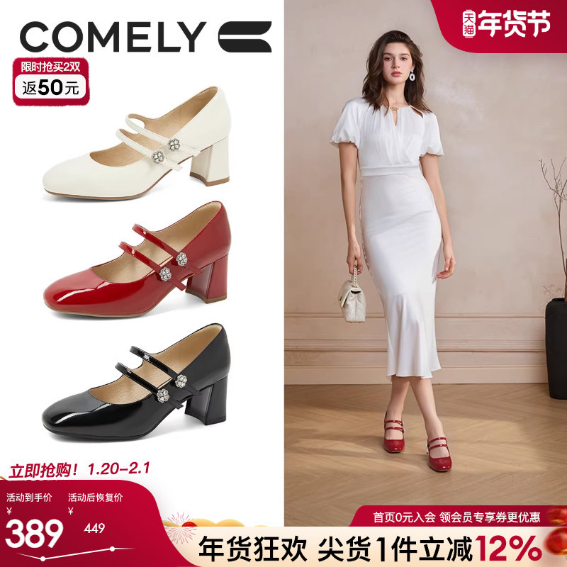 康莉粗跟玛丽珍鞋女真皮春季商场新款法式复古时尚漆皮高跟鞋单鞋