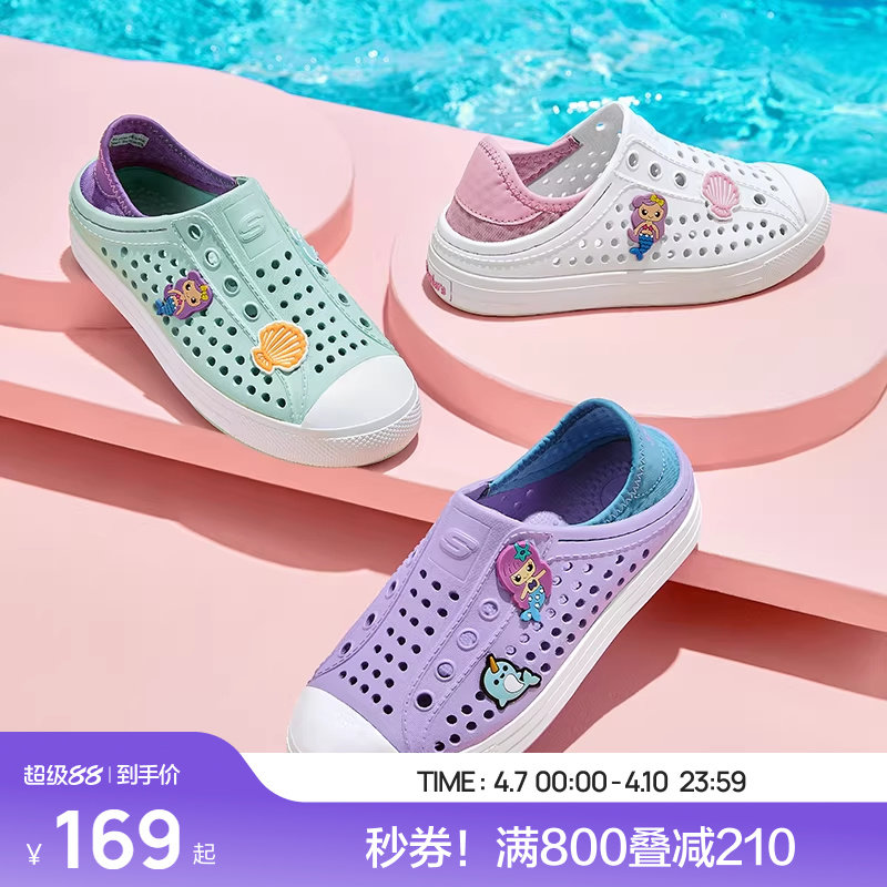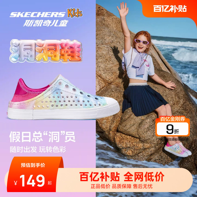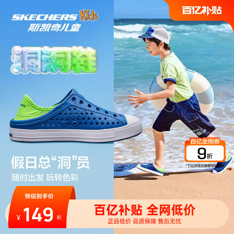 Skechers斯凯奇儿童洞洞鞋男女童一脚蹬凉鞋涉水沙滩鞋防滑凉拖鞋
