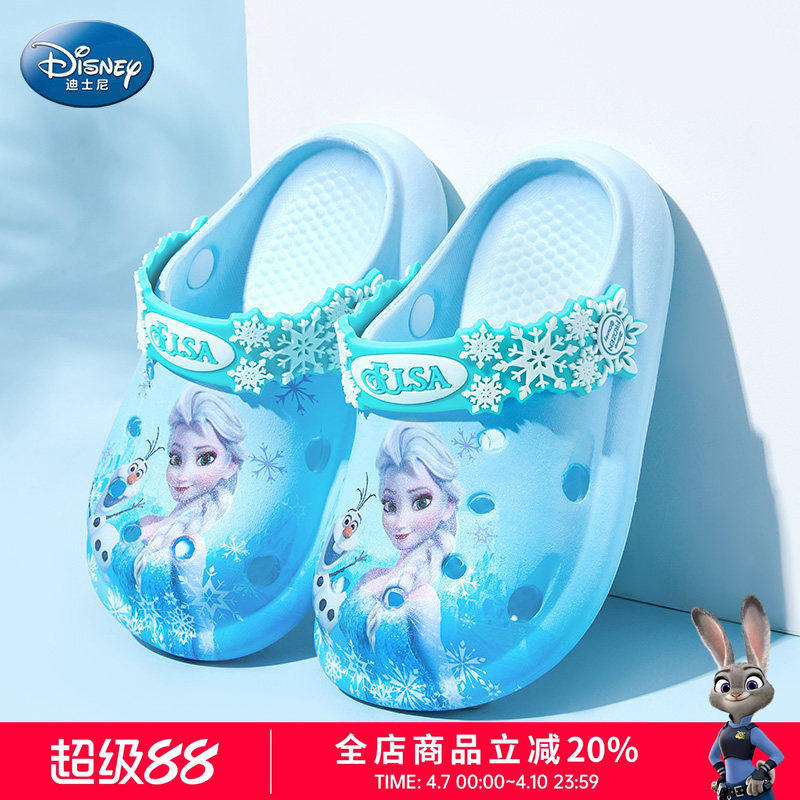 迪士尼女童洞洞鞋夏季2026新款爱莎公主小孩凉拖鞋女孩儿童拖鞋女