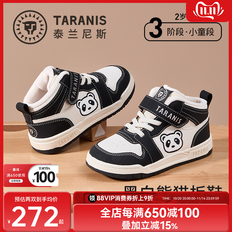 泰兰尼斯儿童板鞋2025冬季新款男童加绒保暖运动鞋女童熊猫休闲鞋