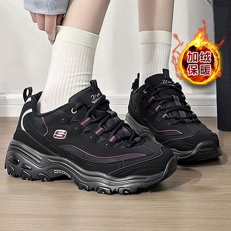 斯凯奇奶茶熊秋冬女子老爹鞋时尚复古运动鞋加绒保暖舒适厚底增高