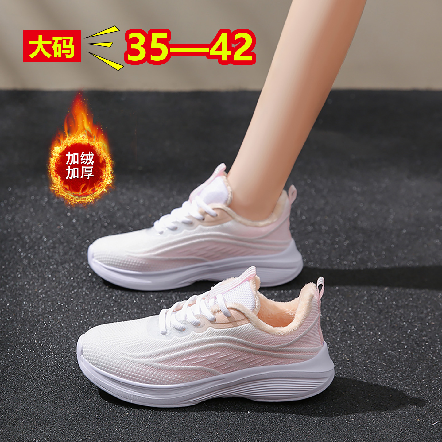 大码加绒保暖运动鞋女2025新款冬季防滑二棉鞋减震轻便软底跑步鞋