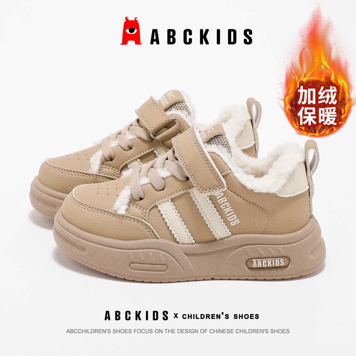 ABCkids儿童板鞋冬季新款男童加绒保暖运动鞋女童软底防寒休闲鞋