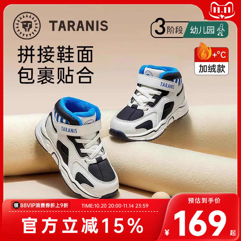 泰兰尼斯儿童板鞋冬季新款加绒保暖运动鞋女小童舒适男孩休闲童鞋