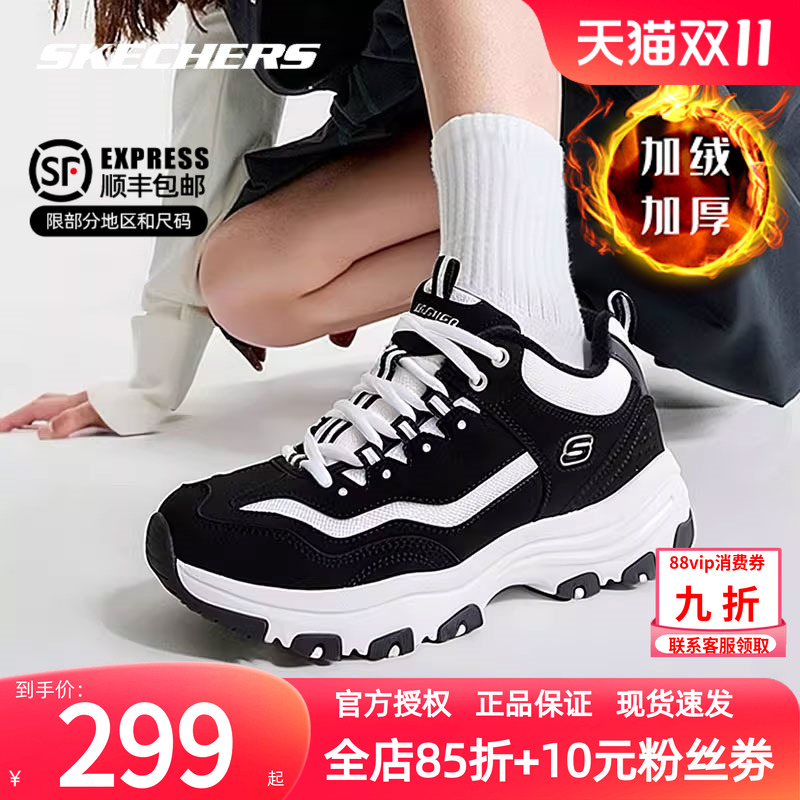 斯凯奇加绒保暖运动鞋女鞋25冬季新款厚底显高老爹鞋休闲鞋熊猫鞋