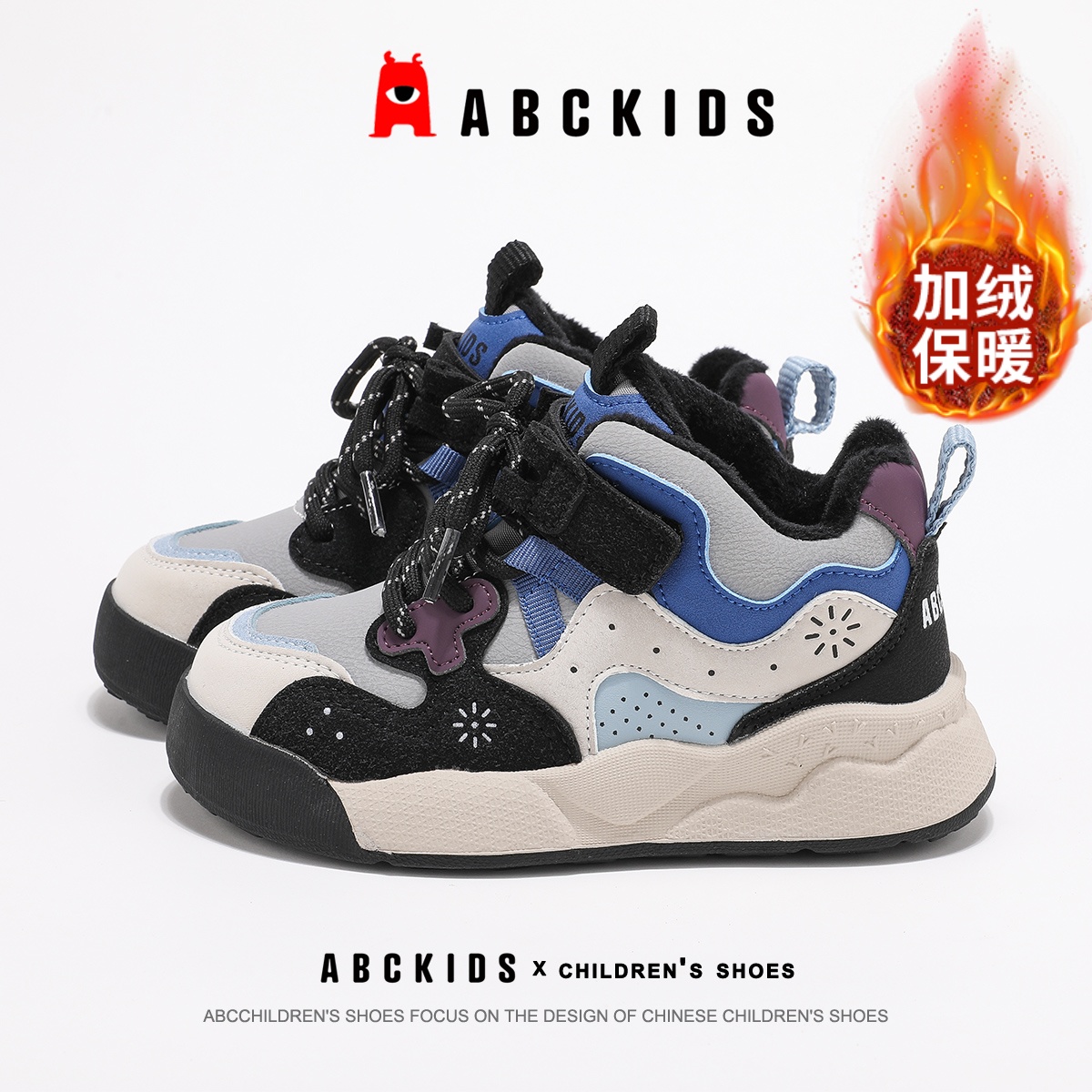 ABCkids童鞋2025冬季新款男童加绒保暖运动鞋女童软底防寒休闲鞋