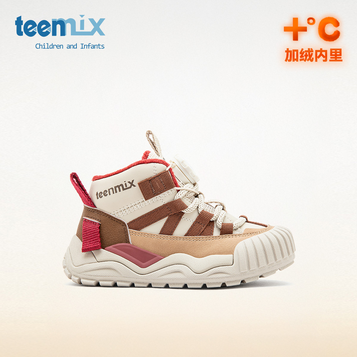 天美意2025冬季新款儿童男童高帮加绒保暖运动鞋女童二棉鞋中大童