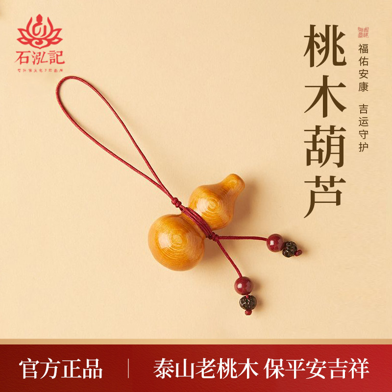 石泓记天然桃木葫芦挂件女朱砂木质手机吊坠钥匙扣男汽车挂饰平安