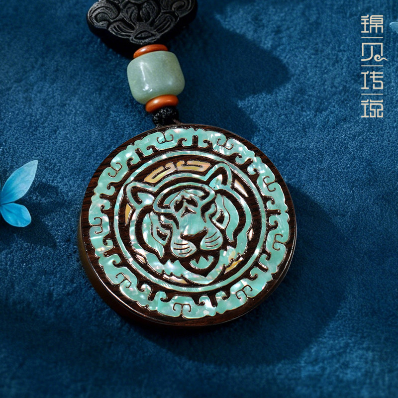 锦贝螺钿挂件木质生肖虎挂件创意钥匙扣汽车挂饰平安挂坠生日礼物