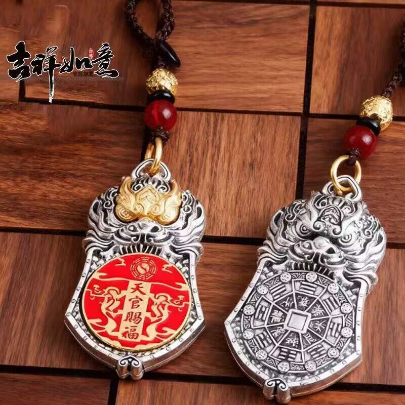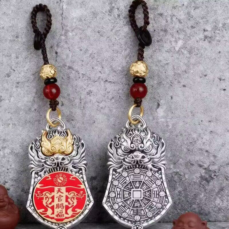 马年天官赐福八卦牌钥匙扣国潮银色转转挂件男女汽车挂饰平安吊坠