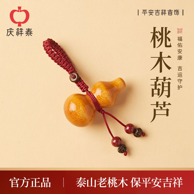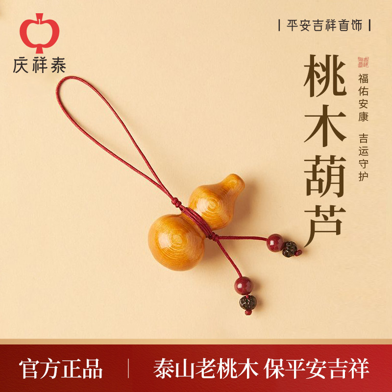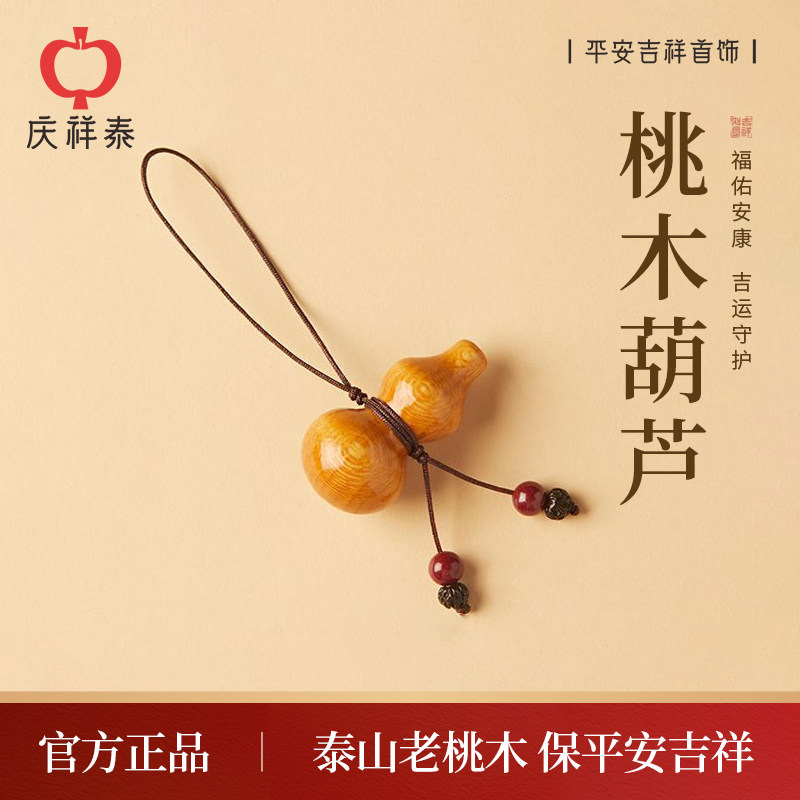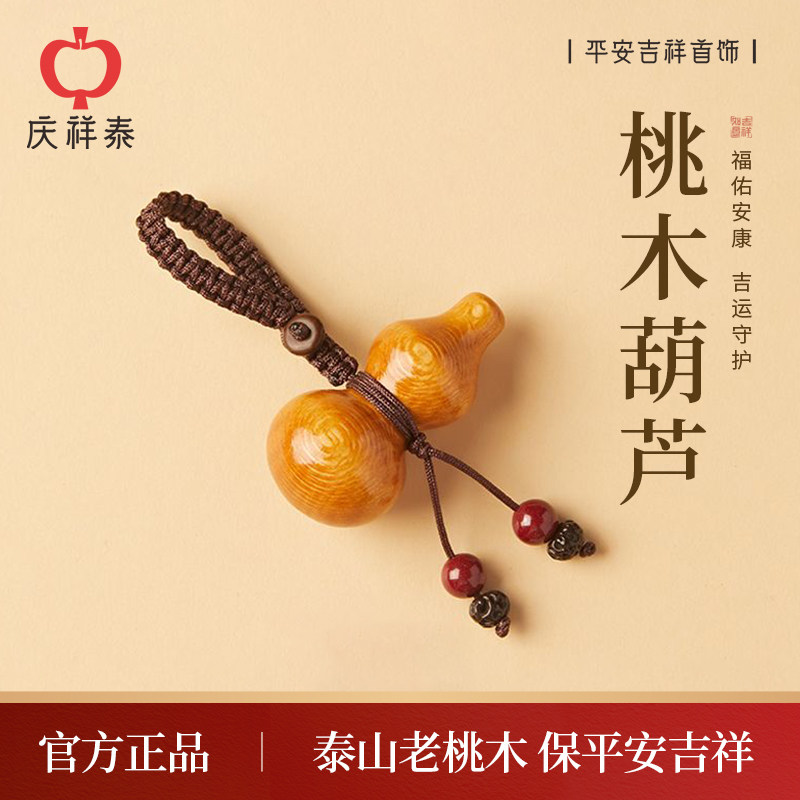 庆祥泰天然桃木葫芦挂件女朱砂木质手机吊坠钥匙扣男汽车挂饰平安