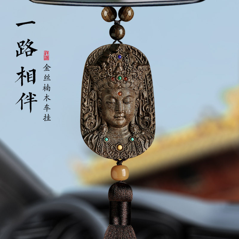 金丝楠木观音汽车挂饰平安2026新款高档木质汽车内车载后视镜挂件