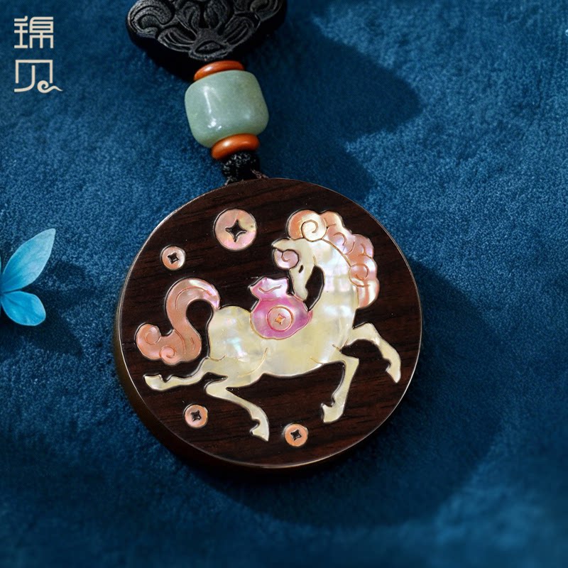 锦贝螺钿挂件木质生肖马挂件创意钥匙扣汽车挂饰平安挂坠生日礼物