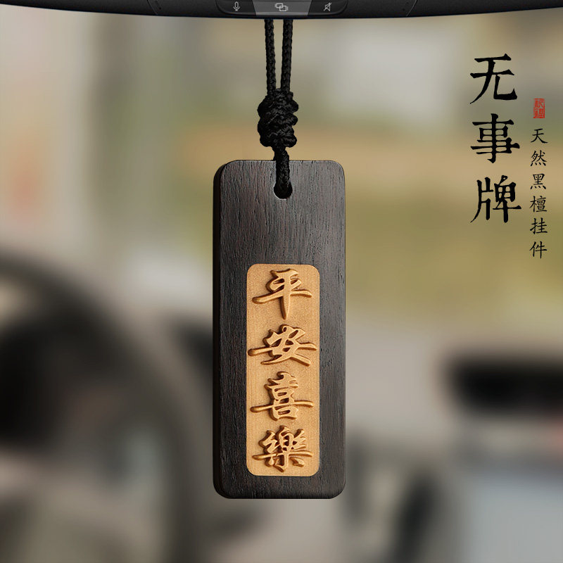 觅境黑檀汽车挂饰平安无事牌男士女款高档木质车内车载后视镜挂件