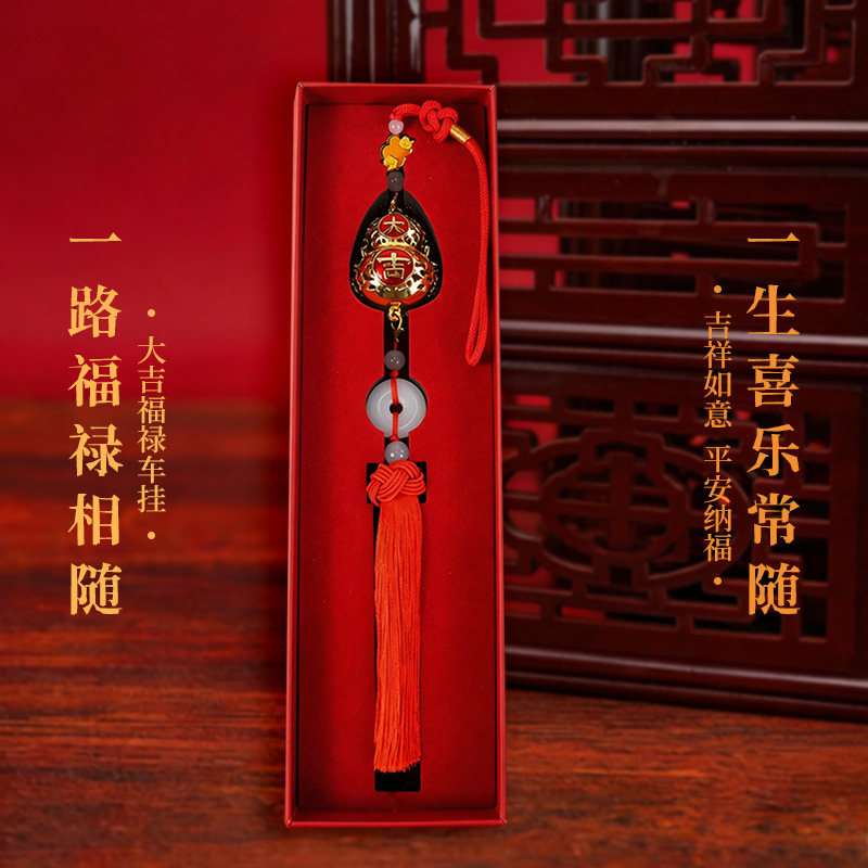 马上有钱车汽车挂饰平安车内吊饰后视镜吊坠手工复古中式男女高级