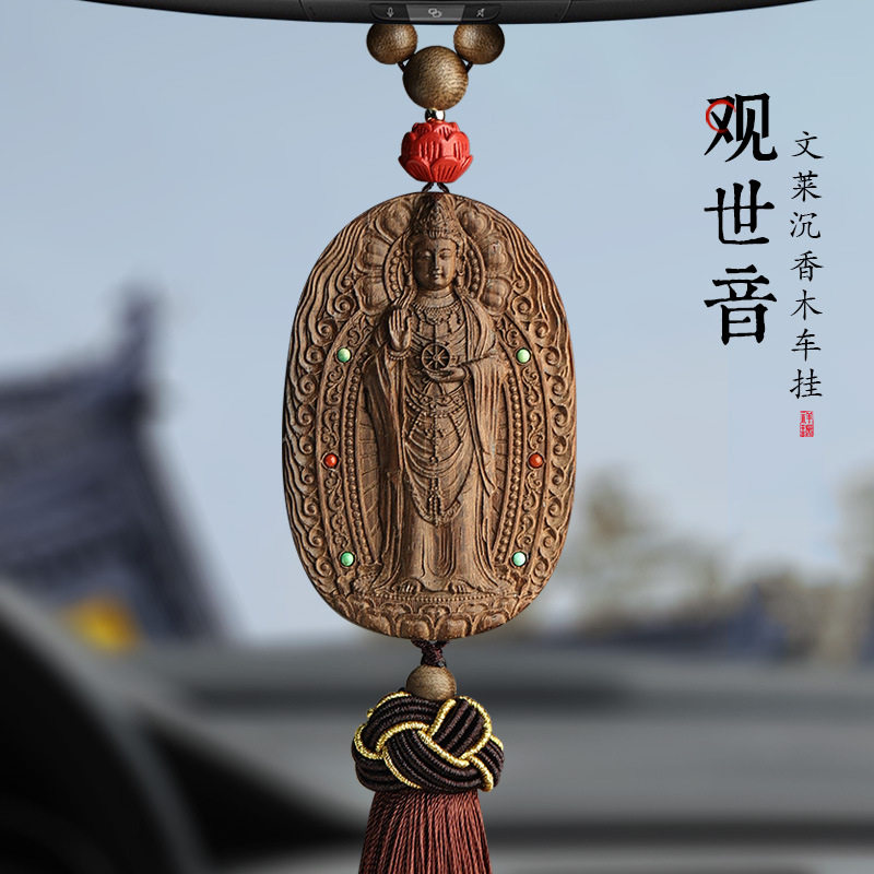 保真沉香观音汽车挂饰平安男女2025新款礼物车载内吊饰后视镜挂件