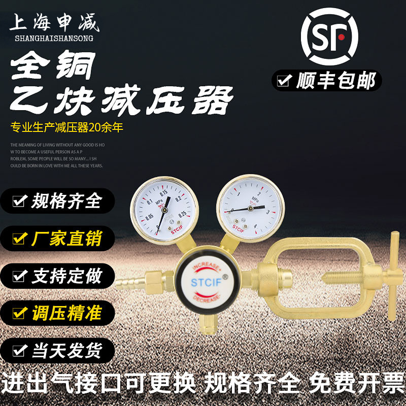 山松上减YQE-213减压器乙炔调压器压力表调压阀稳压器全铜减压阀