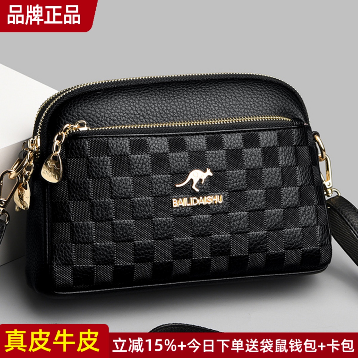 袋鼠真皮女包贝壳包斜挎包女款包包2025新款单肩包小包印花软牛皮